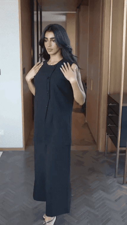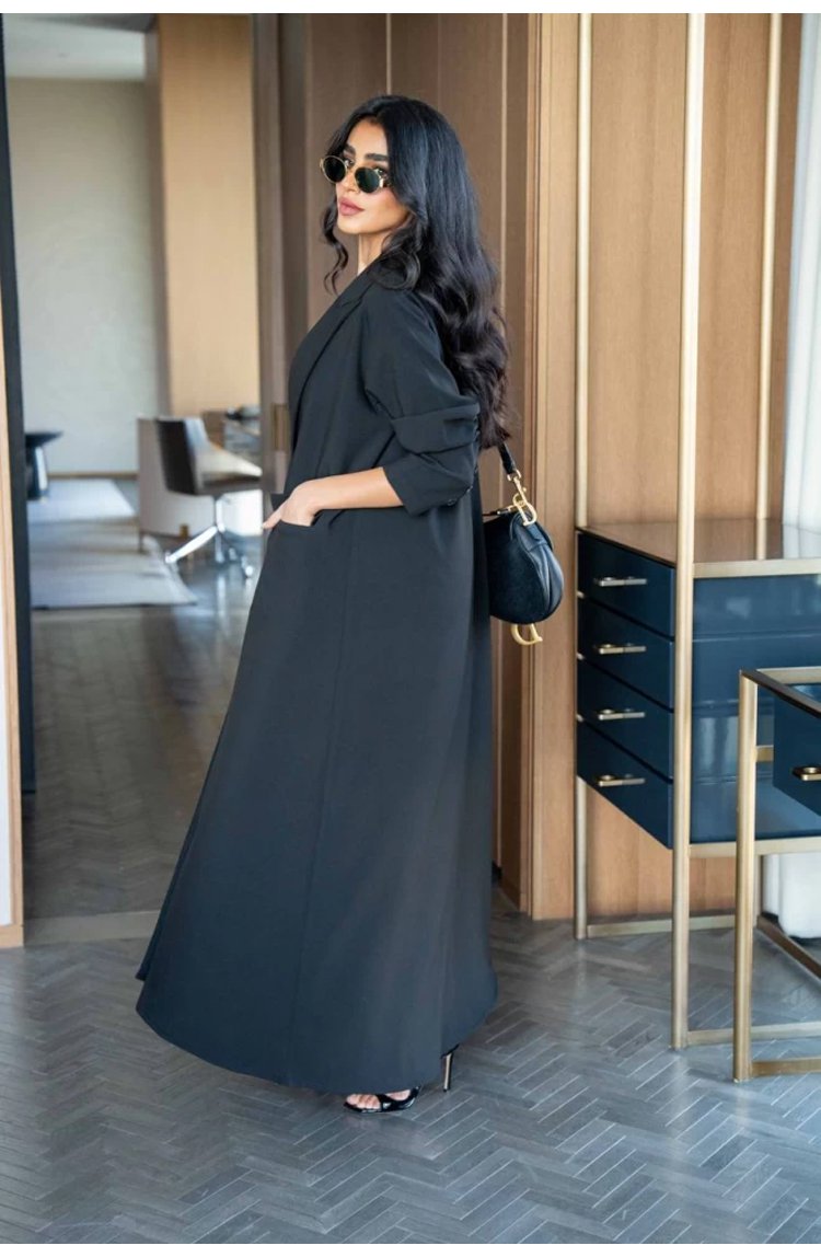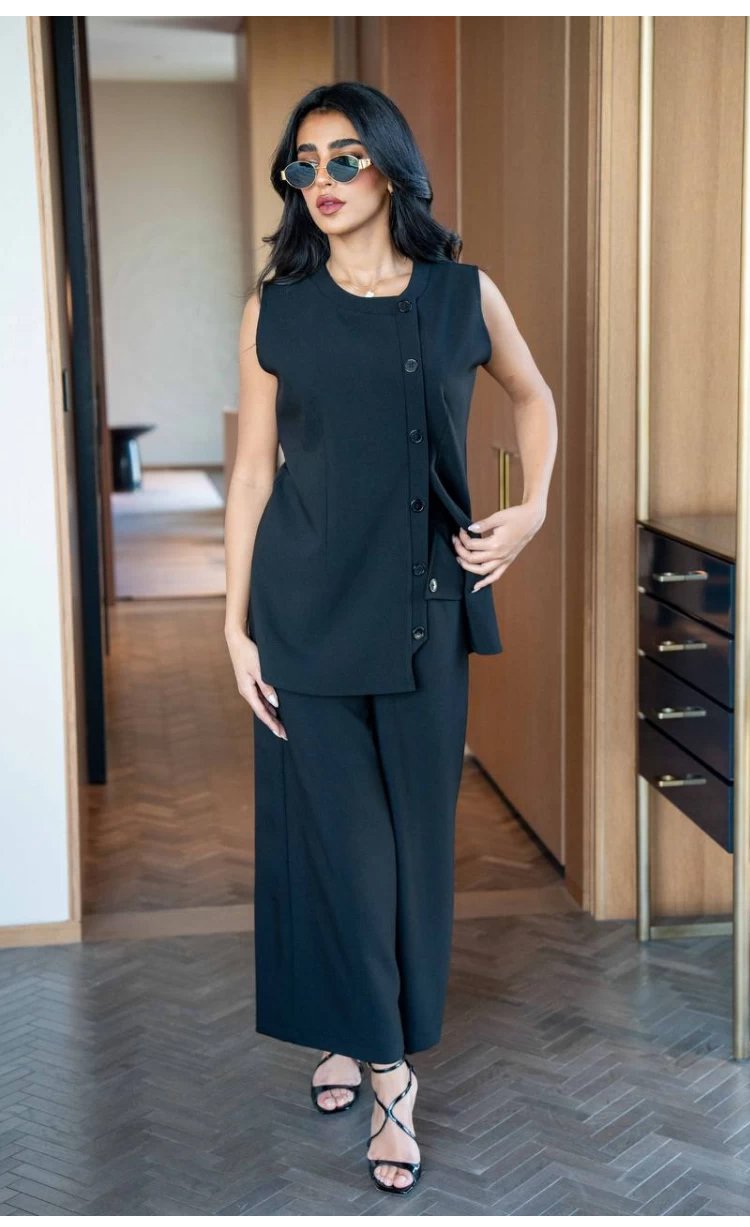 مجموعة معطف طويل بستايل بريطاني راقي وفيست وبنطال بقصة ساق واسعة للنساء ( نفس الملابس المعروضة في عر